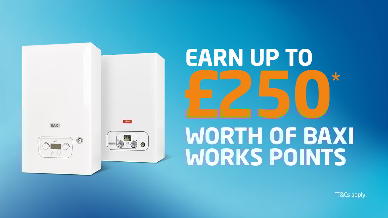 Whether you’re installing our Baxi 600 and 800 boiler ranges and/or the Baxi 400 and Main Eco Compact boilers, these promotions gives both new and existing Baxi Works members the chance to earn even more Baxi Works reward points.